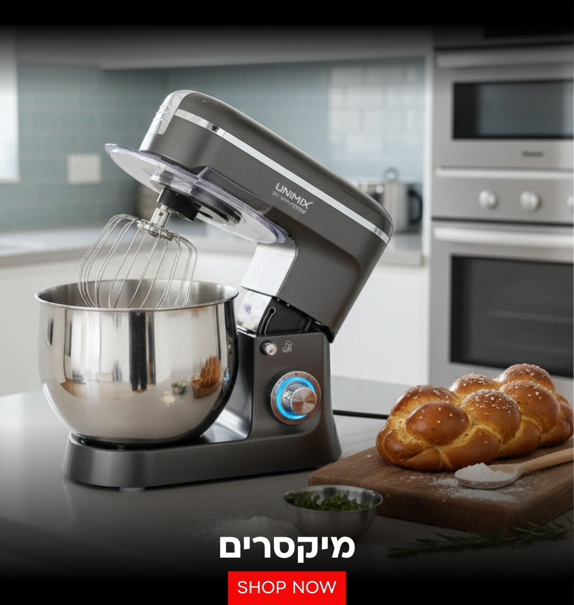 אם אתם מחפשים מוצרים מעולם הבישול והאפייה תוכלו למצוא אצלנו גריל ומנגל חשמליים שבעזרתם לא תצטרכו עוד לצאת ולהדליק את הפחמים כדי לצלות נתח בשר עסיסי. כמו כן תמצאו מיקסרים, סירי בישול חשמליים, פלטות בישול ושבת, נפת קמח, מצנמים להכנת טוסטים מפנקים, קומקומים וגם מיחמים.